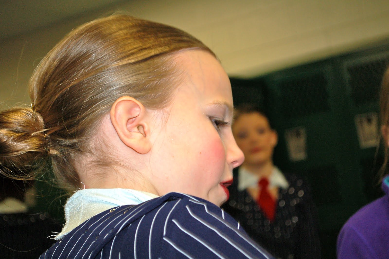 Here she is all ready for jazz. This is the first time she has ever got to wear her hair totally down to dance. The girls love it. They think they are so "it."